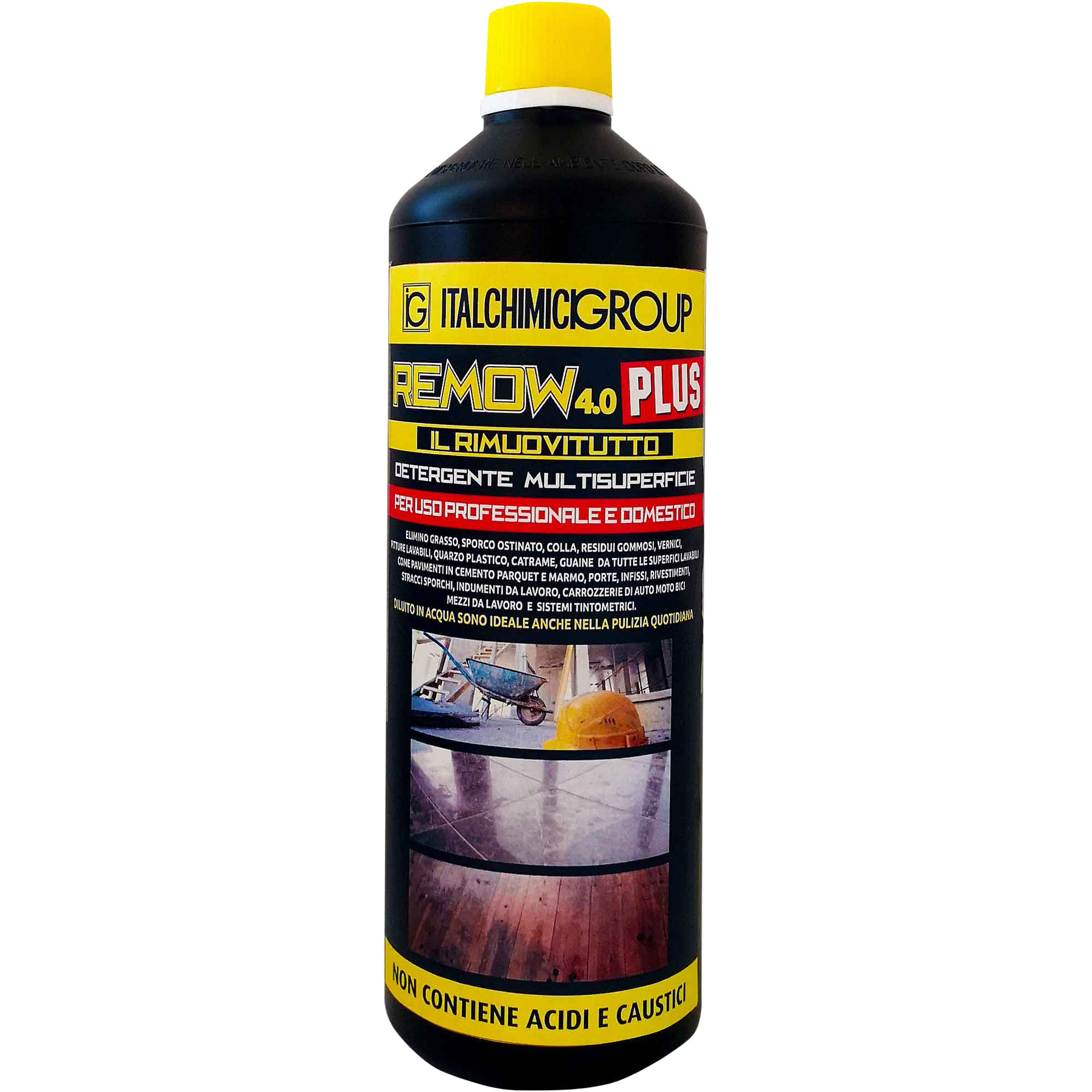 REMOW elimina con azione ammorbidente residui di vernici, smalti, pitture, colle, grassi da ogni superficie, marmo compreso. Contiene tensioattivi. Confezione da 1 l
