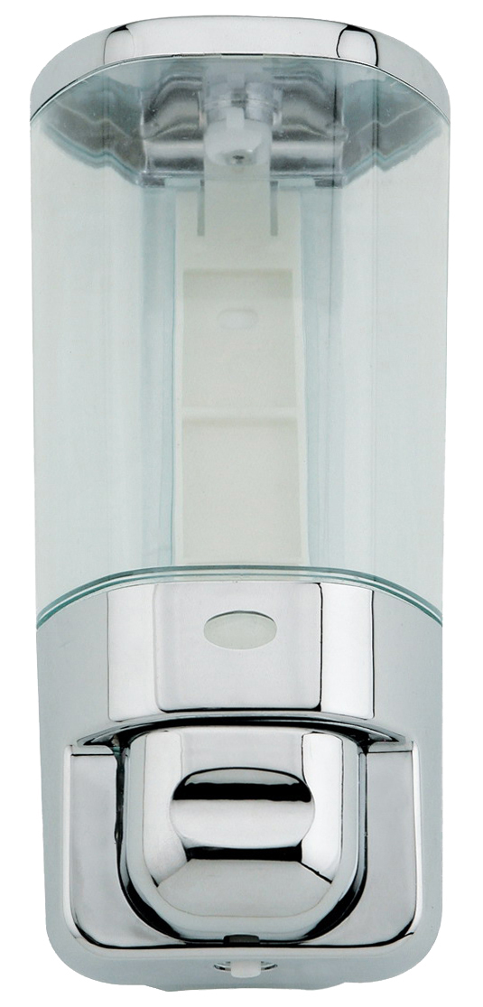 Dosatore sapone gel realizzato in resistente plastica trasparente, da montare a parete. Grande capacità, facile da riempire e semplice da pulire. Contiene max 500 ml. Dimensioni 8 x 8,5 x h 21 cm. Colore cromo.