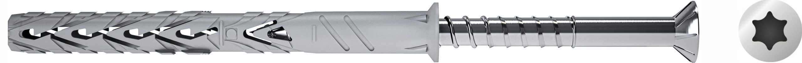 in poliammide 6. Alette antirotazione. Espansione in profondità per l avvitamento della vite. Completi di vite testa svasata piana, impronta TX ø x L mm 8×100
