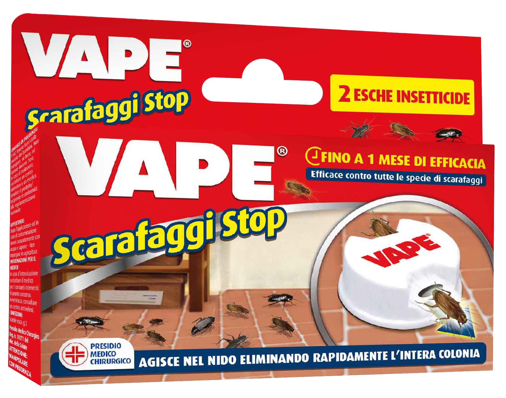 unesca gel insetticida in contenitore pronto alluso per il controllo di blatta fuochista (Blattella germanica) e scarafaggio nero (Blatta orientalis), ninfe e adulti di entrambi i sessi. Con la sua nuova formula, agisce per ingestione dimostrando la propria azione gi nelle prime 24 ore fino al controllo dellintera popolazione entro 2 settimane dallapplicazione. Confezione da 2 esche da 2 g.