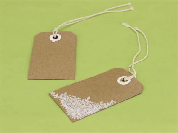 Etichetta cartone tag 24 pz w/lace corner natural cm4.5×8