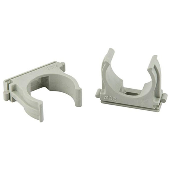 CLIPS FISSAGGIO A SCATTO PER TUBO RIGIDO GRIGIO Morsetto di fissaggio. PER TUBI CON DIAMETRO: 16 mm – 20 mm – 25 mm – 32 mm – 40 mm. 100 PEZZI