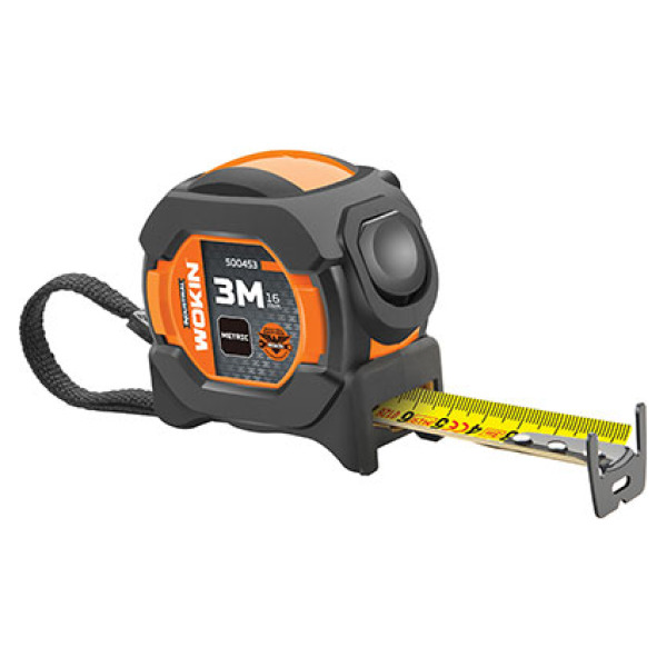 Corpo in abs con tpr antiscivolo. Spessore nastro Mm. 0,12. Scala metrica su entrambe le facce. Doppio aggancio. Funzione blocco automatico del nastro. In blister.