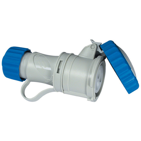 Art. 71.140 in materiale termoplastico autoestinguente. Spina mobile 2P+T – 16A – 200/250V – 6h. Cablaggio rapido. Grado di protezione IP 67. Costruita in riferimento alle normative CEI EN 50250 e CEI EN 60309-1/2