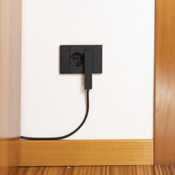 Art. 80.081 Mod. Clock. Spina a squadra smontabile e salvaspazio da 10A (piccola) 2P+T – 250V – 50/60 Hz – IP20. Corpo in tecnopolimero ad alta resistenza. Conforme alle norme CEI. Colore nero.