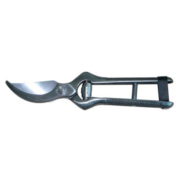 Interamente in acciaio forgiato. Con lama a mezzaluna e chiusura in cuoio.