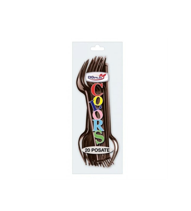 Forchetta in plastica monouso DOPLA. Confezione da 20 pezzi. Colore cioccolato.