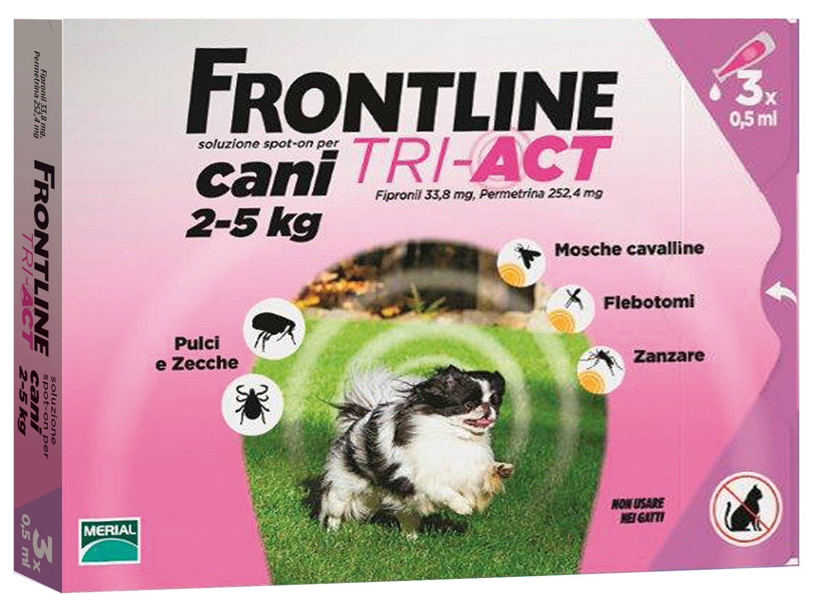 Per il trattamento e la prevenzione di infestazioni da pulci e/o zecche per uso topico, ove sia necessaria lattivit repellente (anti-feeding) nei confronti di flebotomi, mosche cavalline e/o zanzare. Il prodotto elimina le pulci presenti sullanimale entro 24 ore. Un trattamento previene successive infestazioni da pulci per 4 settimane, e pu essere usato come parte di un trattamento strategico per la dermatite allergica da pulce ove sia stata precedentemente diagnosticata da un veterinario. Ha unefficacia repellente nei confronti delle zecche da 7 giorni e fino a 4 settimane dal trattamento. Per cani 2 – 5 kg. Confezione 3 pipette