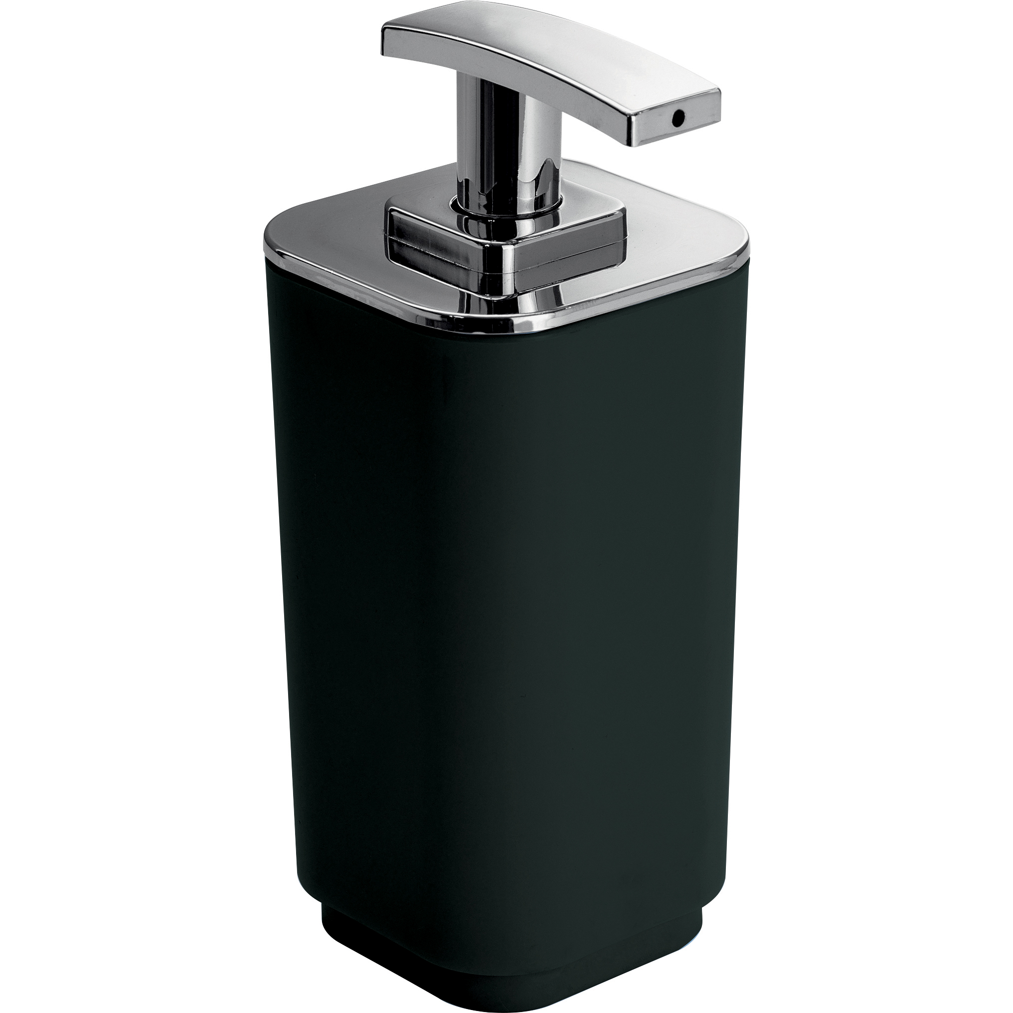 Design: Matteo Thun. Dosatore porta sapone liquido con erogatore a pompa in plastica cromata e contenitore d’appoggio in resina, rende unico il tuo bagno. Una semplice pressione sarà sufficiente per ottenere una dose necessaria alla pulizia di mani o viso. Colore nero opaco. Dimensioni 6,5 x 7,1 x h 16 cm