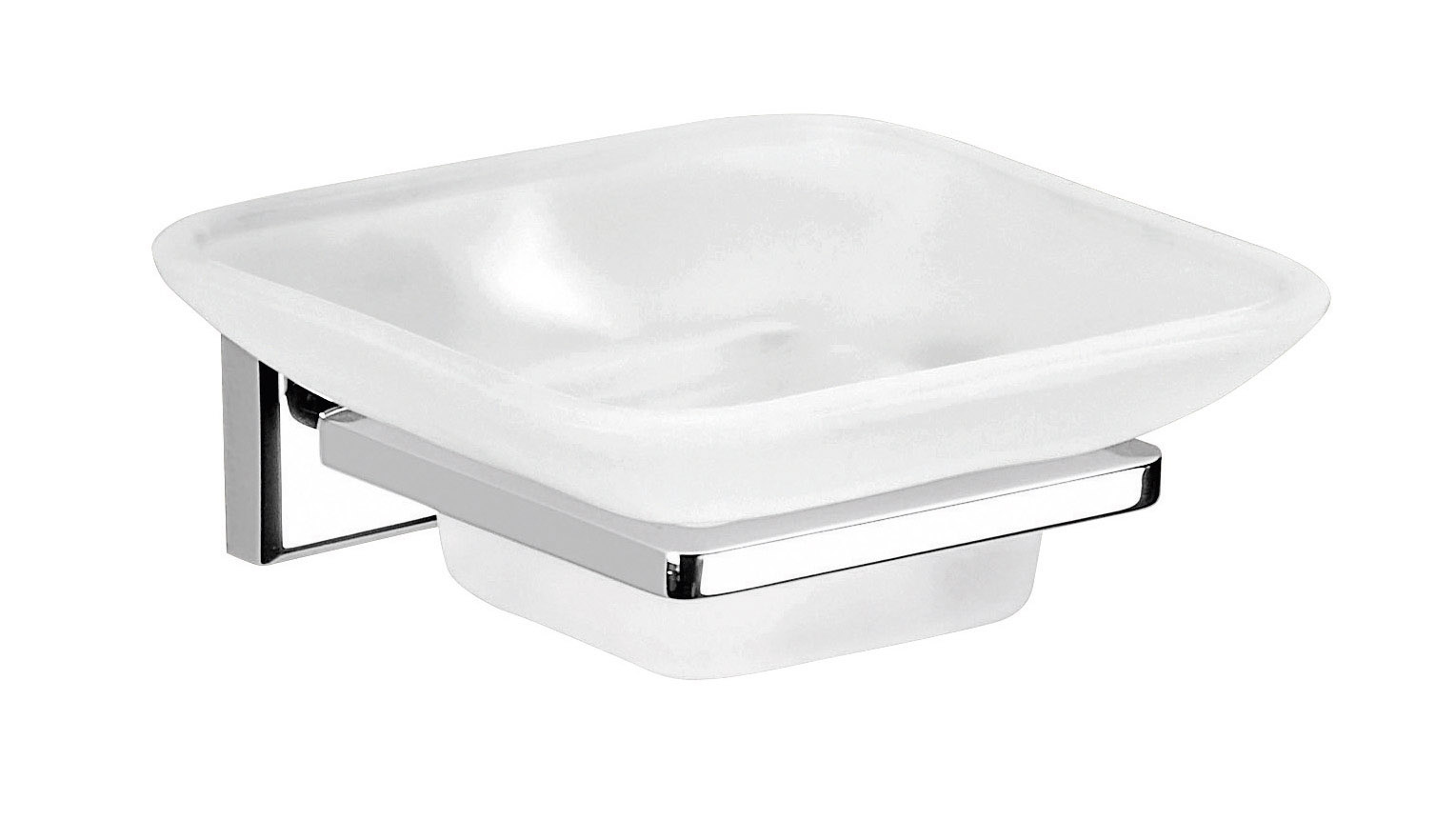 in acciaio inox e cromall, contenitori in vetro satinato Art. 6911 portasapone. Portata max 7 Kg. 10 anni di garanzia. Dimensioni 10 x 12,5 x h 5 cm. Art. 6911