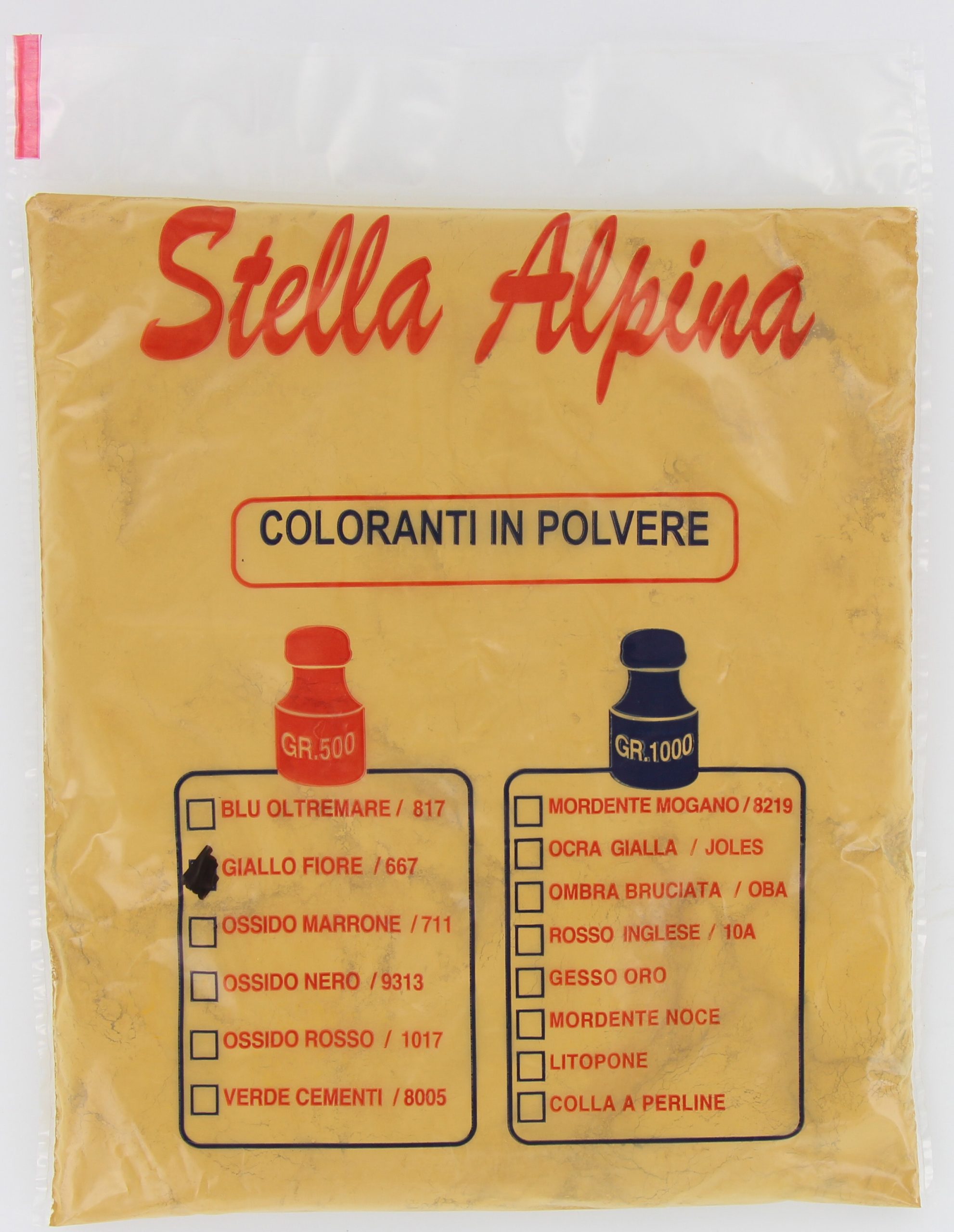 Acquistabile in confezione da 18Terre colorate – Giallo fiore cemento da 0,500 kgID: 14960 – Rif: 667