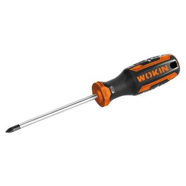 In acciaio al cromo vanadio. Punta magnetica con finitura nera. Impugnatura bimateriale antiscivolo. In placchetta appendibile.