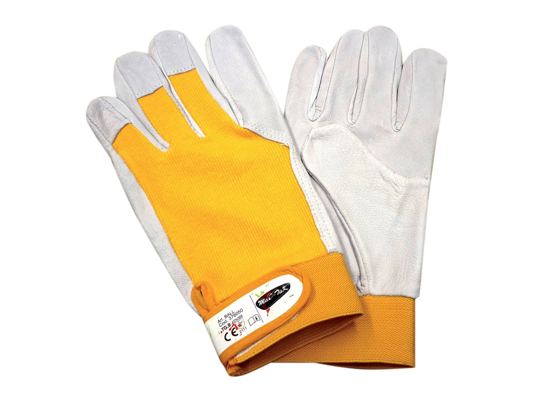 palmo in fiore ovino, dorso tela cotone elasticizzata. Polso elasticizzato regolabile con velcro. A norma CE 2111 Taglia 9