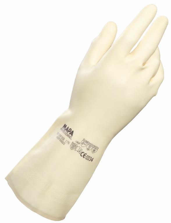 Guanti lattice naturale, senza silicone, con spessore di Mm. 0,45. Con finitura esterna zigrinata e clorinata per una migliore protezione del prodotto manipolato. Lunghezza Cm. 31. Ideali nell’industria alimentare. Dispositivo di protezione individuale (DPI), categoria 3. Protezione contro i rischi meccanici conforme alla normativa EN388, con livelli 0010. Conforme alla normativa EN 347 per la protezione dai micro-organismi e dalle sostanze chimiche leggere; EN 421 per la protezione da contaminazione radioattiva.