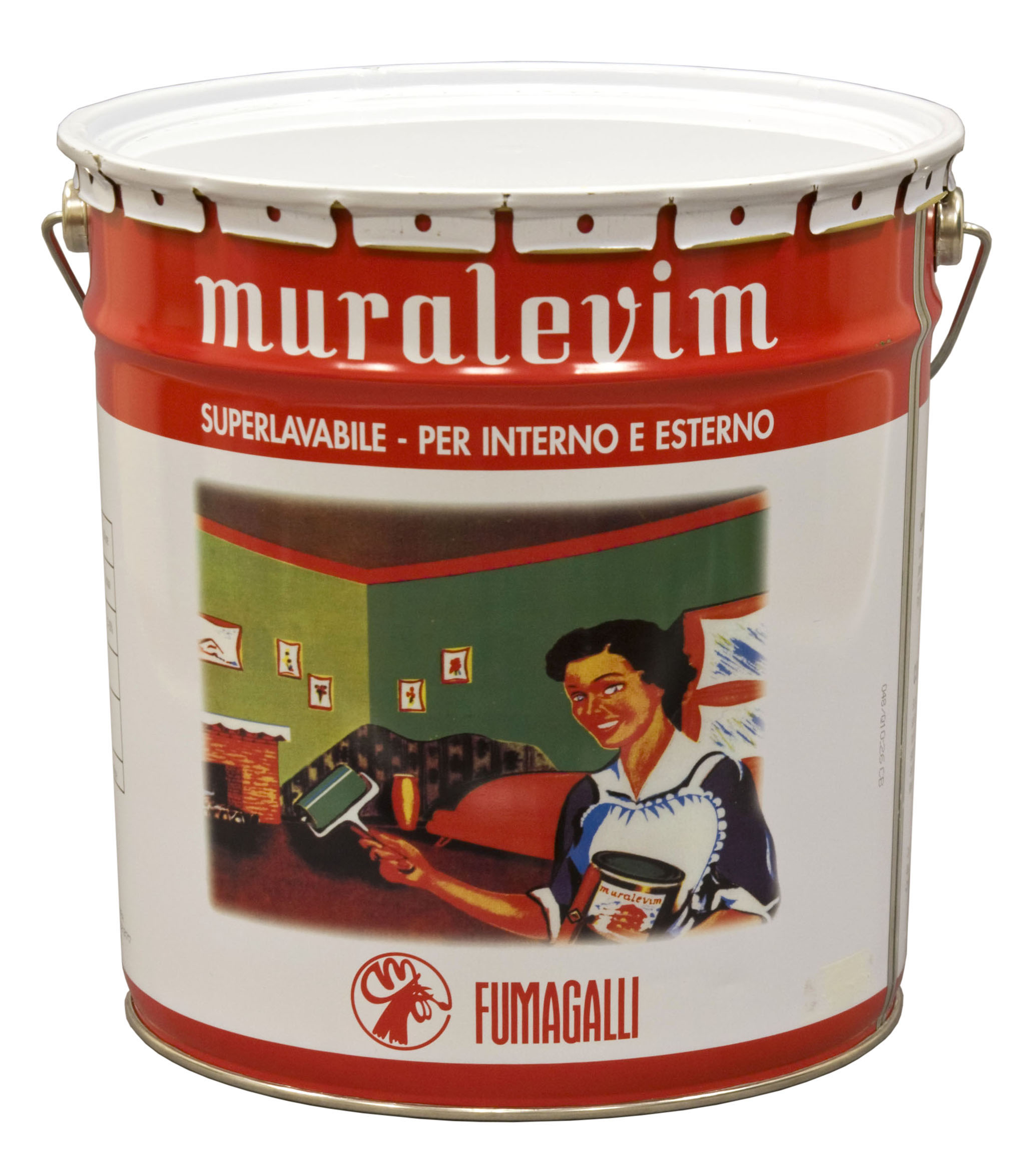 MURALEVIM traspirante per interni ed esterni. A base di copolimeri viniliversatici in dispersione acquosa, caratterizzata da elevata copertura e ottima scorrevolezza nellapplicazione. Dotata di buon potere traspirante e idrorepellenza, indicata per locali soggetti ad elevata quantit di vapore acqueo (bagni, cucine). Applicazione pennello, rullo, spruzzo. Diluizione con acqua (dal 15 al 30 in funzione dellassorbimento del supporto e del metodo applicativo). Essiccazione completa 24 ore. Sovrapplicabile 4-8 ore. Resa teorica (per due mani a seconda della diluizione) 6-8 m/l. Colore bianco. Fusto 14 l