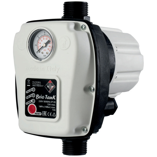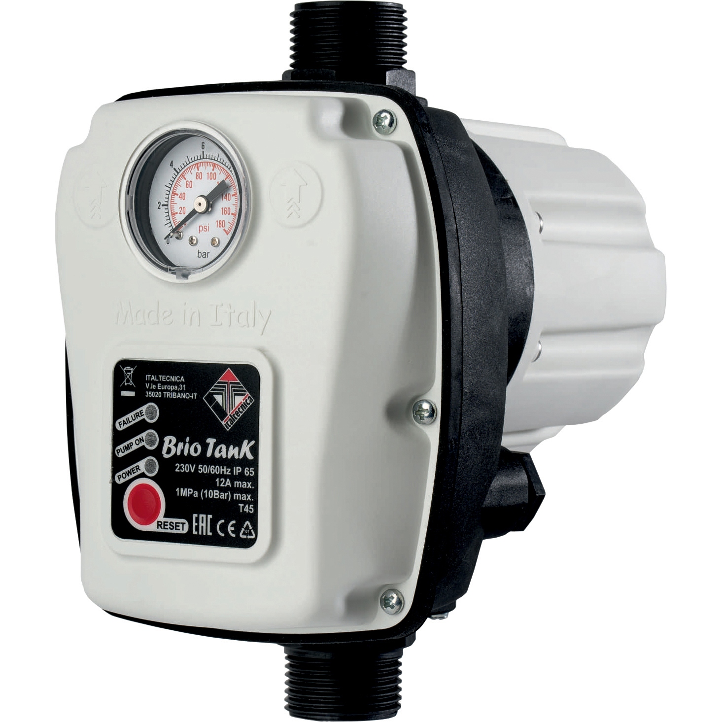 Mod. BRIO TANK dispositivo elettronico di controllo. Sostituisce pressostato, manometro e idrosfera. Dispone di un piccolo vaso di espansione da 0,4 l con membrana in butile che previene continui Start e Stop dell elettropompa. Manometro incorporato.