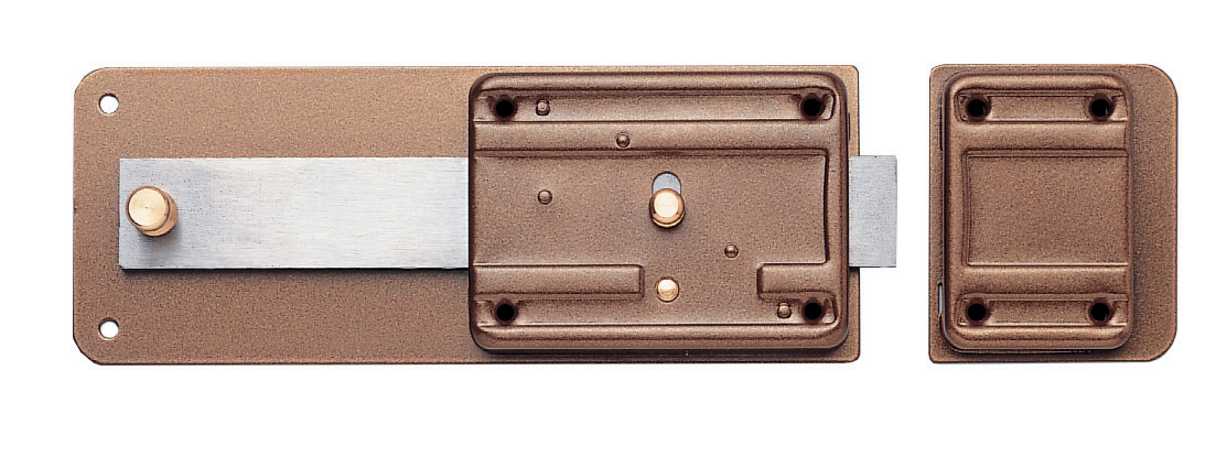 Art. 320 catenaccio a scrocco e pomolo di blocco interno. Cilindro esterno staccato. Catenaccio a 7 mandate + scrocco incorporato. Scatola verniciata mm 90×238 Entrata 50 mm