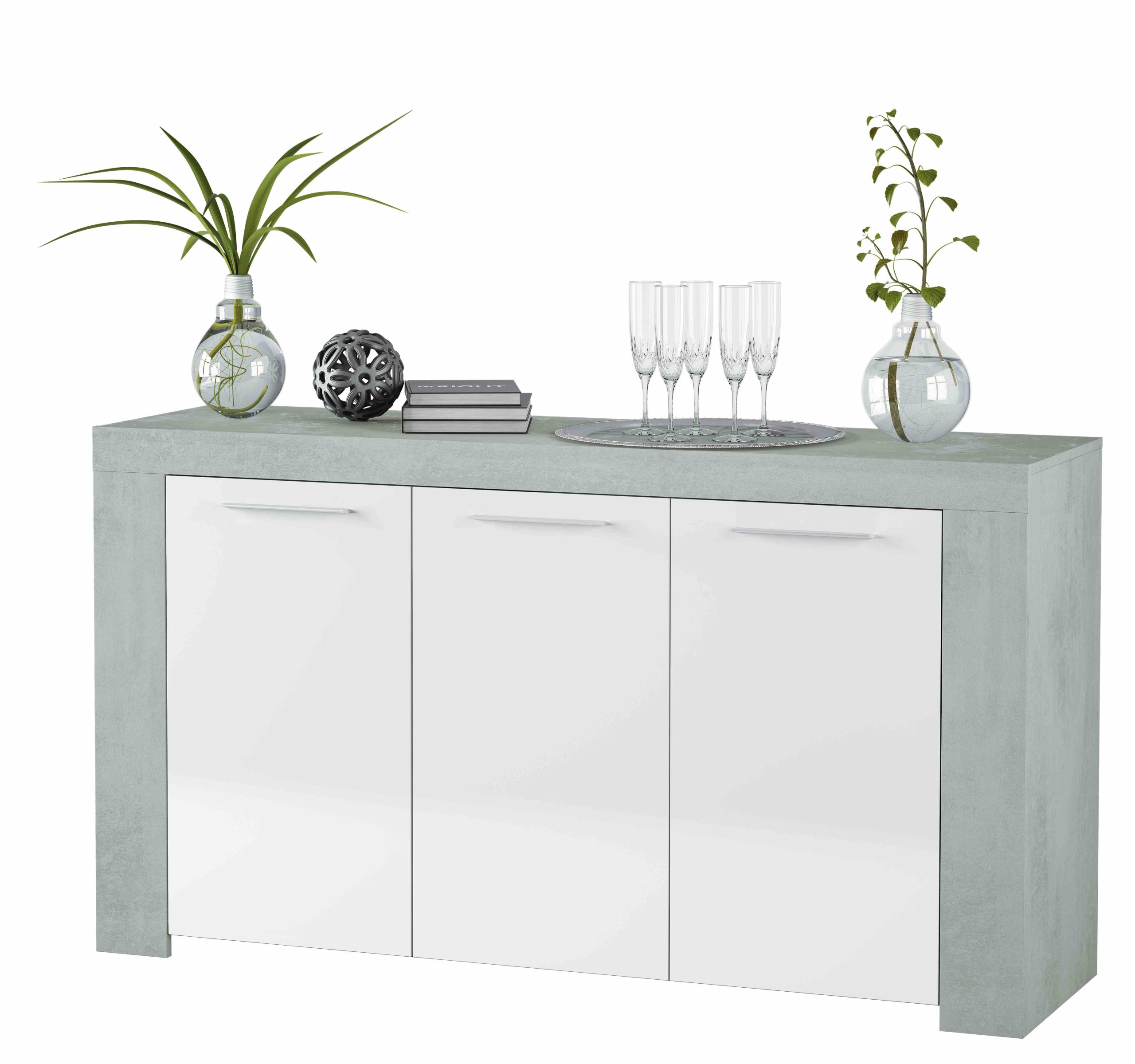 LINEA AMBIT a 3 ante e 3 ripiani interni. Pannello truciolare melaminico spessore 15 mm. Bordi: P.V.C. spessore: 0,6 mm e melaminici. Schienale pannello in fibra di densitá media, laccato. (MDF/DM) spessore: 3 mm. Colore bianco. Cerniere in metallo per le ante. Maniglie in metallo effetto cromato. Piedi ABS (termoplastico di alta resistenza). Piede occulto per la parte centrale del mobile. Tacchetti ABS antirumore e antigraffio per la parte inferiore del mobile. Facile da montare e da pulire. Dimensioni 144 x 42 x h 80 cm.