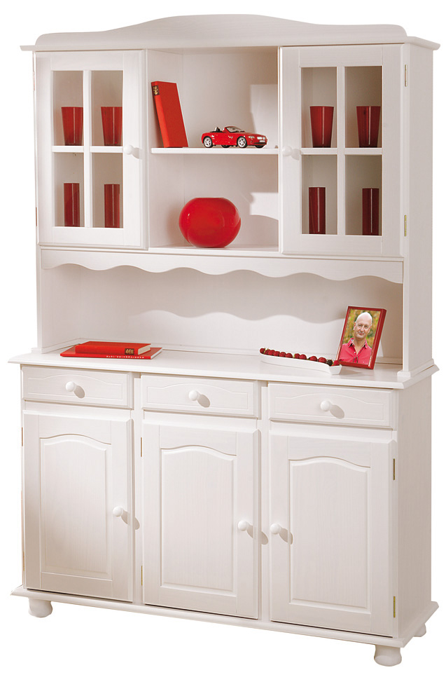Realizzata in legno di pino massiccio, composta da 3 cassetti su guide scorrevoli, 5 porte (di cui 2 finestrate), 2 piccoli scaffali e una grande nicchia centrale, permette di ottimizzare gli spazi per riporre tutte le tue cose. Dimensioni 130 x 32/43 x h 198 cm. Colore bianco. Peso 68 kg.