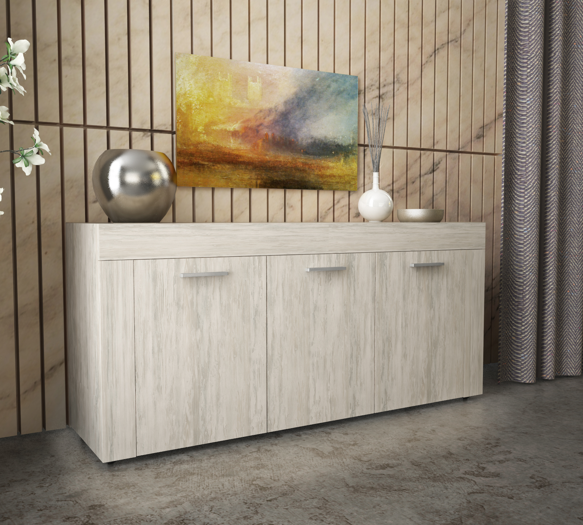 a 3 ante. Pannello truciolare in melaminico 15 mm. Facile da montare. Dimensioni 157 x 41 x h 82 cm. Colore bianco venato