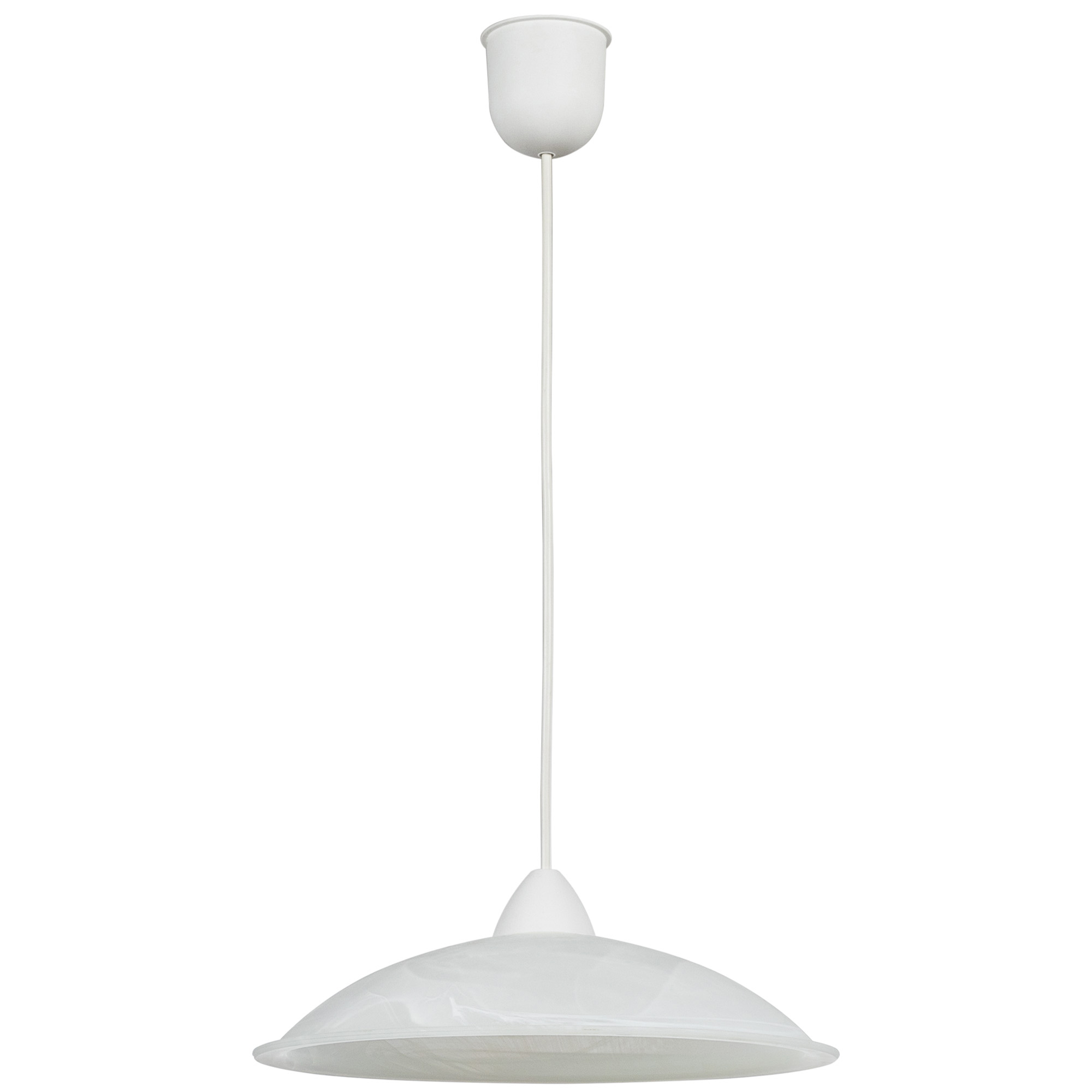Sospensione a soffitto con montatura in plastica bianco, realizzata con vetro centrifugato alabastro bianco e satinato esterno. Attacco E27 (grande) – 220/240V – 50 Hz – IP20. Max wattaggio lampadina 57W (non inclusa). Diametro ø 30 cm. Peso 1,42 kg.