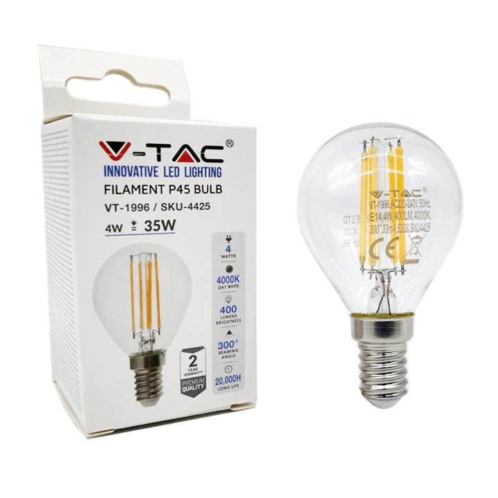 Lampadina v-tac sku 4425 filamento led 4cw cog e14 p45 bianco naturale 4500k