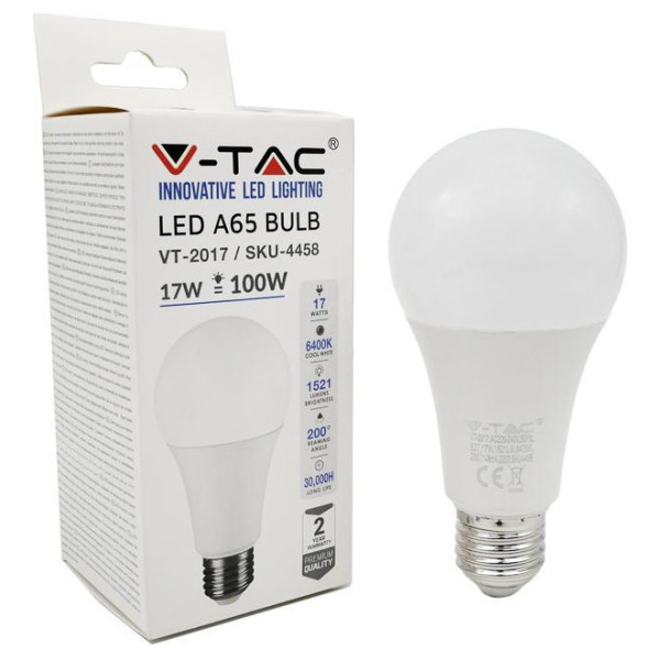 Lampadina v-tac sku 4456 led 17qa65 e27 200d termoplastico bianco caldo do 3000k