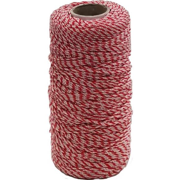 lenza x muratori a tre capi in polipropilene. Titolo 210/24. Colore bianco/rosso. Confezione da mt.200