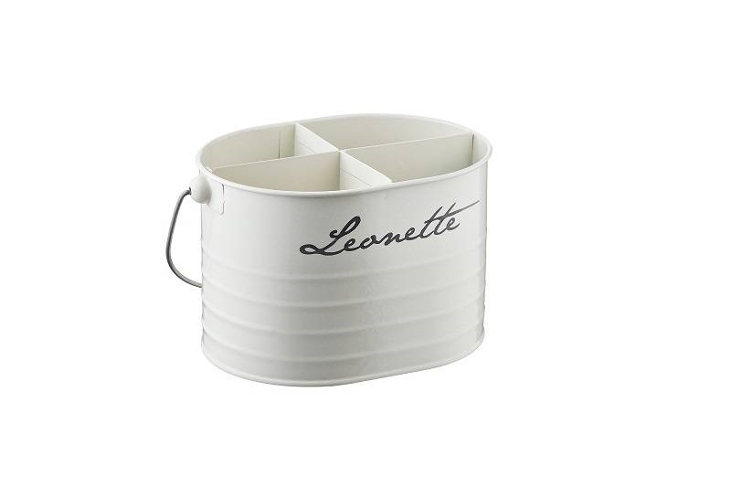 LEONETTE – SECCHIELLO IN LATTA BIANCO CON 4 SCOMPARTI 16,5×12,5×11 cm
