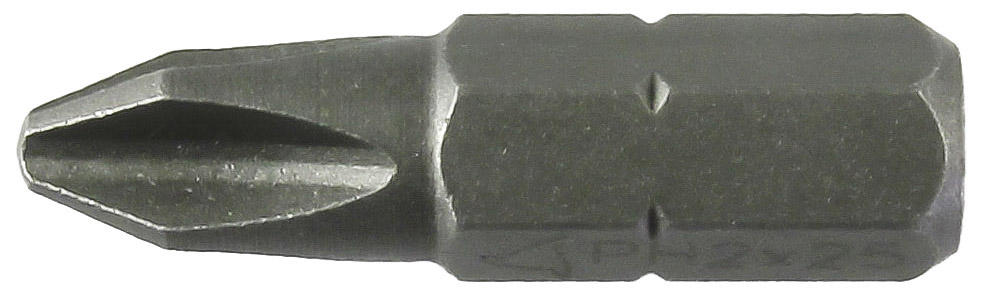 in acciaio al cromo vanadio con impronta fresata a croce Phillips – DIN 3126. Attacco . Lunghezza 25 mm. Diametro 6 mm. Misura PH 2.