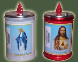 Lumino votivo led ecologico con cartoncino plastificato bianco (usa e getta ). Il lumino è della durata di 90 giorni di luce continua garantita. Sono disponibili varie immagini con preghiera sul retro.