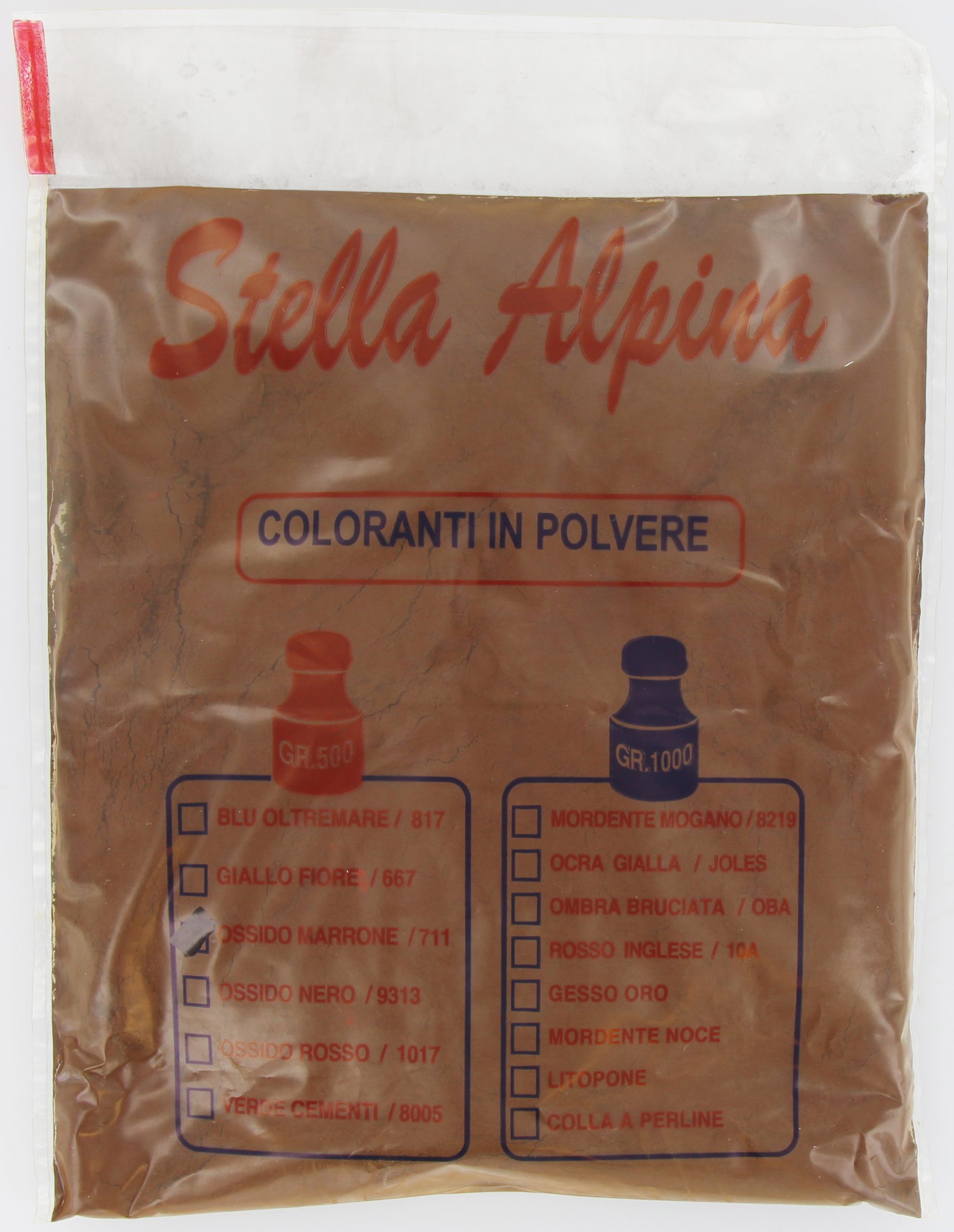 in polvere, per la colorazione di pavimentazioni cementizie, rivestimenti murali esterni, intonaci plastici. Confezione da 0,500 kg Colore marrone