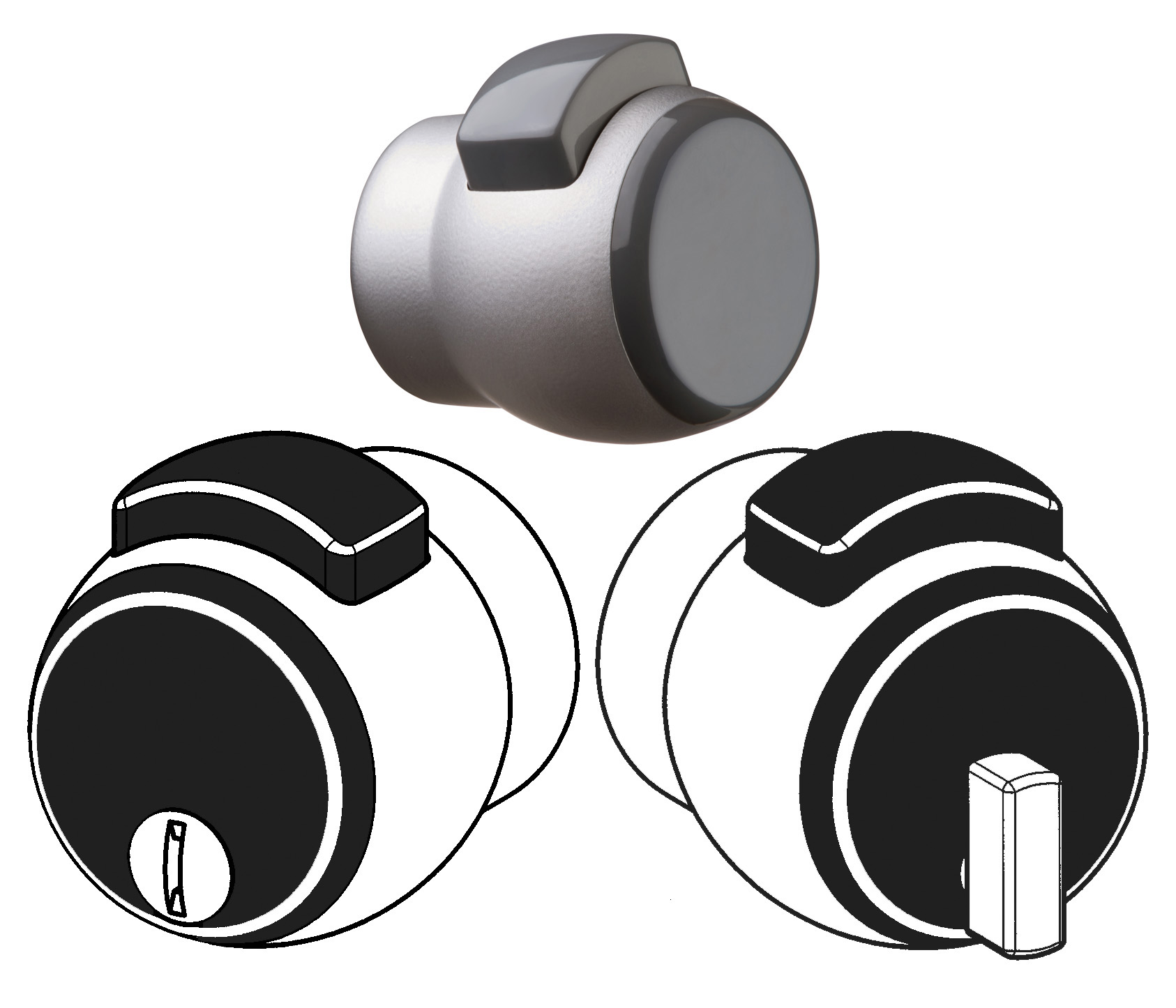 Art. 12 bloccaggio con girevole apertura esterna con chiave di emergenza, cacciaviti e simili. Per bagni. Per porte in legno, alluminio e PVC con spessori da 32 a 60 mm Serratura tubolare. Finitura argento/grigio