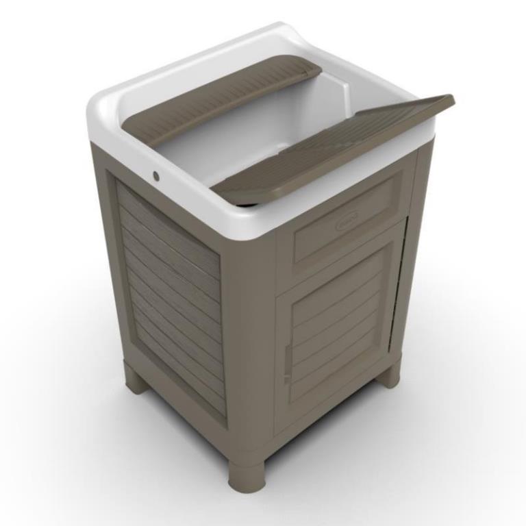 Innovativo. robusto. elegante. Realizzato in resina 100% riciclabile e completo del kit sifone” per un’immediata installazione. Piano regolabile e sportello frontale posizionabile con apertura a dx o sx permettendo così l’inserimento in qualsiasi angolo della casa. Facilissimo da montare. da pulire e idoneo per installazioni anche all’esterno.