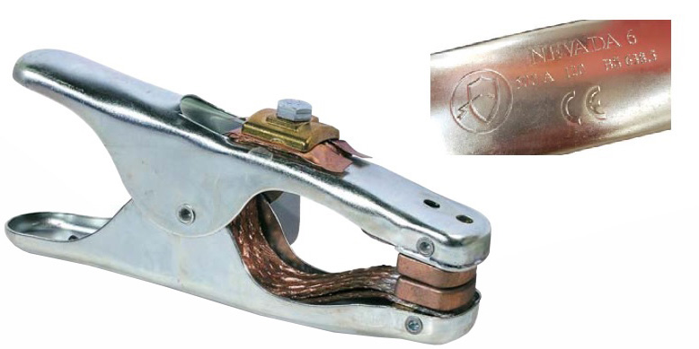 Nevada 6 in lamiera stampata in acciaio elettrozincato. Contatti in ottone ramato e treccia in rame. Serraggio del cavo con lamella di rame. Avvolgifili e serracavo in acciaio in acciaiao ramato. Bloccaggio a molla. A norma CE BS 638.5 Portata 500 Ampere. Apertura 95 mm. Sezione cavi 95 -120 mm.