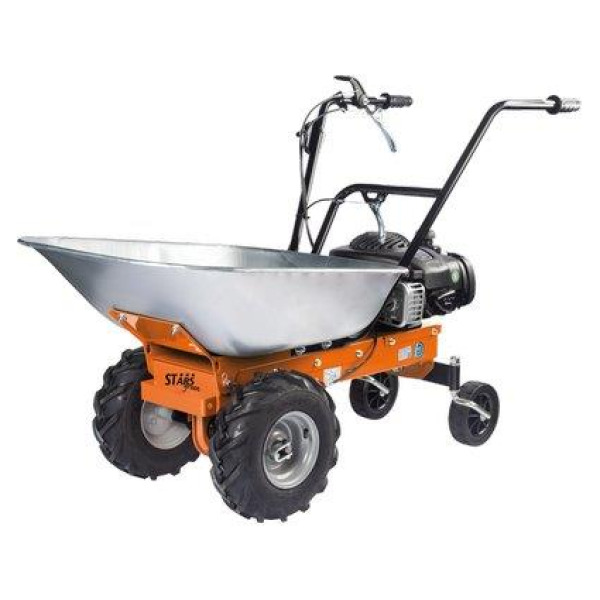 Con motore monocilindrico da Kw. 3,1 alimentato a benzina. Avviamento a strappo. Portata carico massimo Kg. 100, con due ruote motrici. Cambio con 1 marce in avanti + retromarcia. Cassone con modalità di ribaltamento manuale. Peso: Kg. 54.
