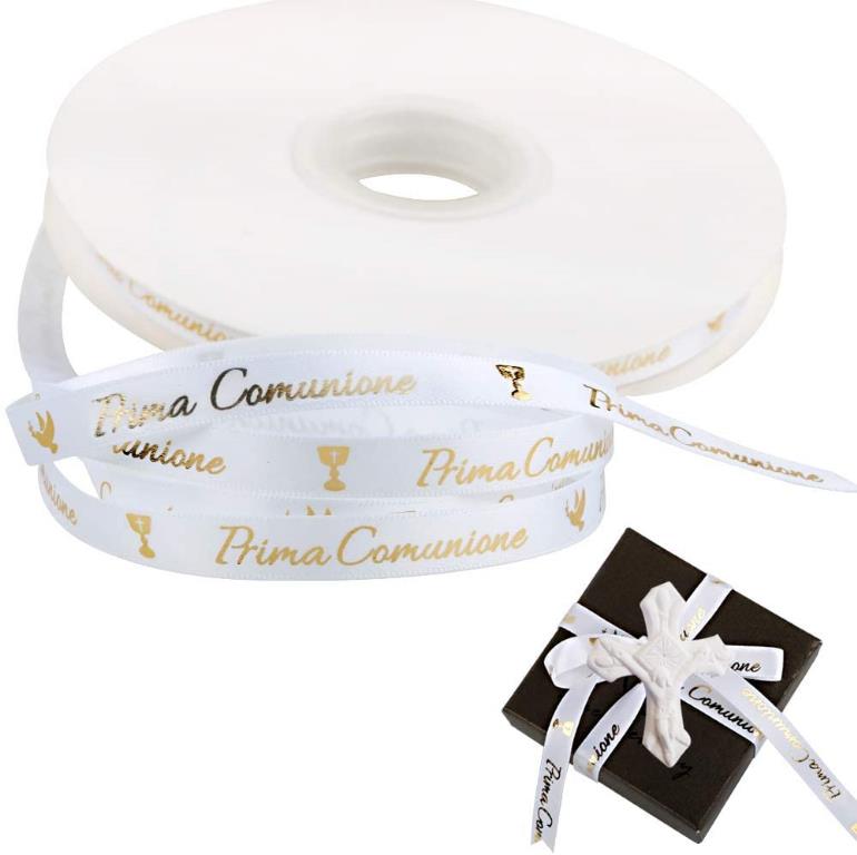 Nastro comunione 10mmx25 yard bianco scritta oro