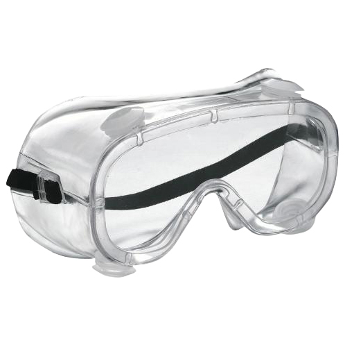 Montante e lente in plastica trasparente antiurto, fascia elastica e 4 valvole di aerazione laterali. A norma EN 166. Colore trasparente.