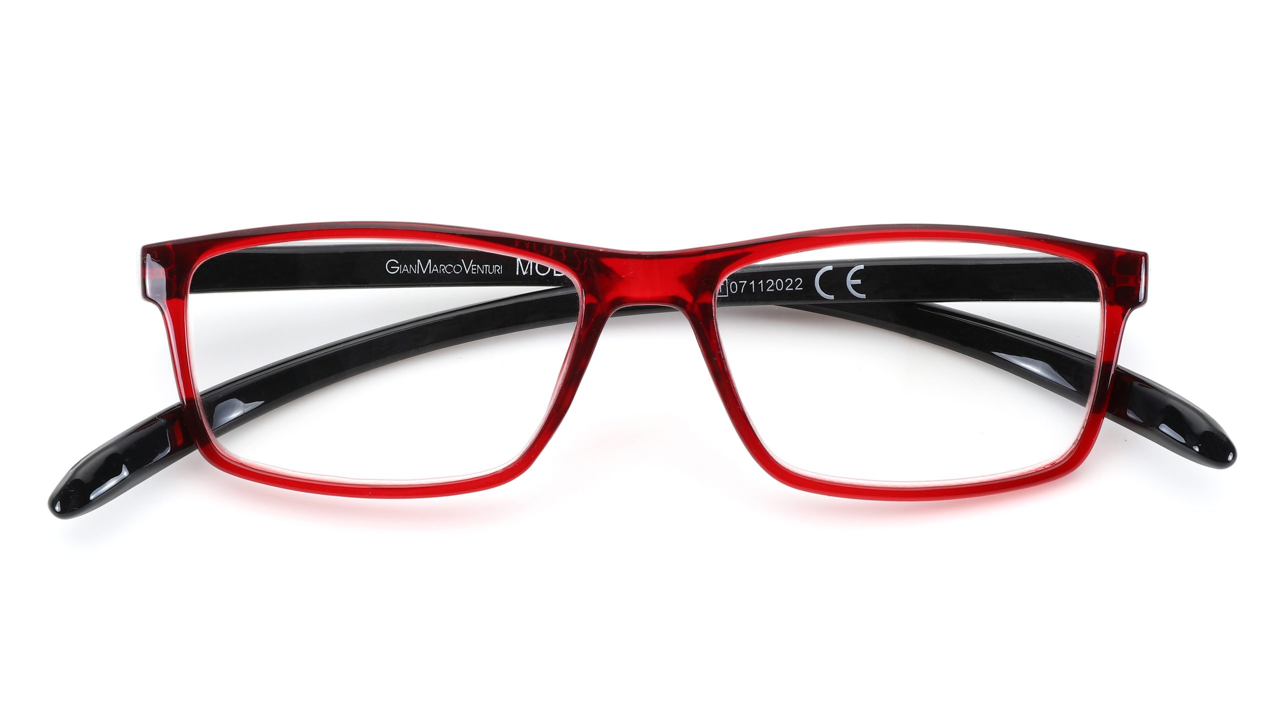 Mod. VERONA montatura in leggero materiale organico iniettato, lenti asferiche ultrasottili ed infrangibili. Astine flessibili. Diottrie da +3,00Colore rosso