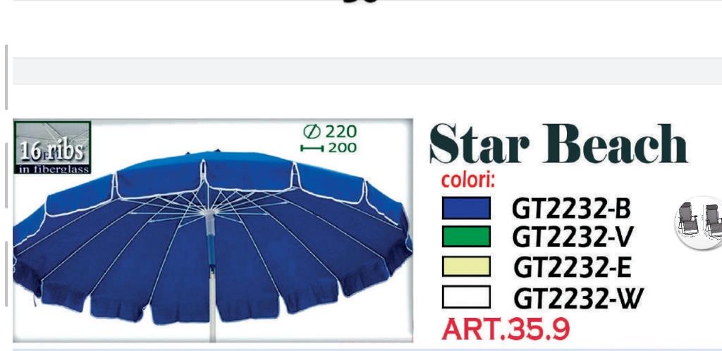 ombrellone starbeach nbbu002bumd blu 220cm palo 32/32