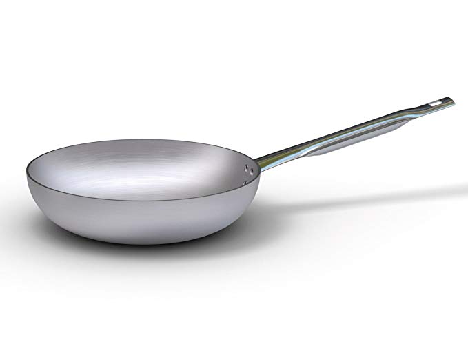 Manicatura professionale in acciaio inox a nervatura rinforzata, in tubolare per ridurre la trasmissione del calore, “a piena presa”.