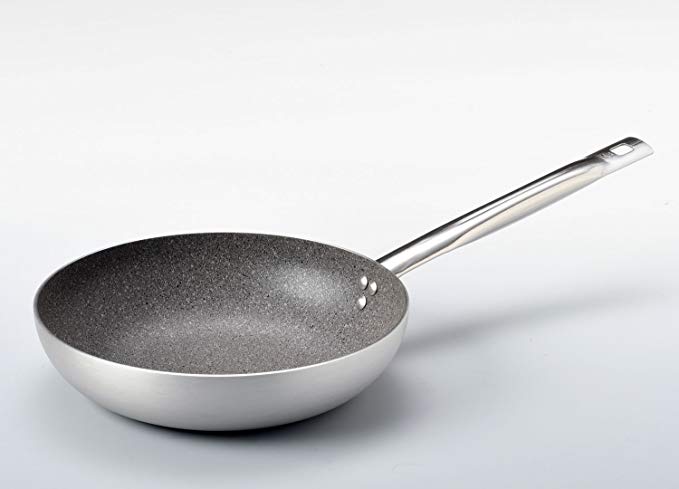 Padella Granite in lega di alluminio ad alto spessore con rivestimento antiaderente di alta qualità. Spessore costante mm 3, marcatura in acciaio inox a nervatura rinforzata, in tubolare.