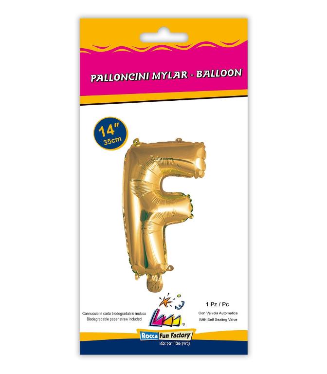 Palloncino mylar lettera f oro mini 14”-35 cm con valvola