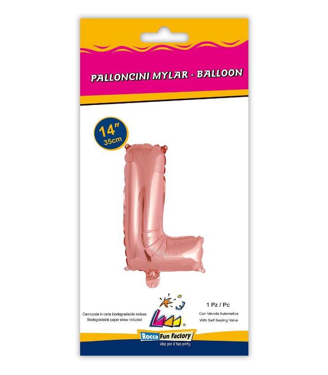 Palloncino mylar lettera l rosa gold mini 14”-35 cm con valvola