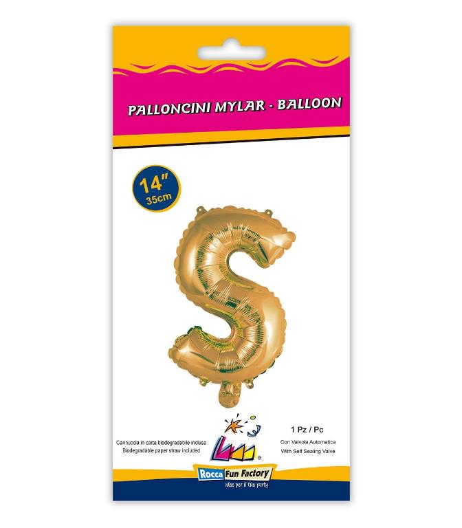 Palloncino mylar lettera s oro mini 14”-35 cm con valvola