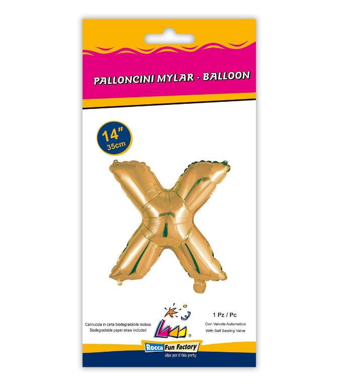 Palloncino mylar lettera x oro mini 14”-35 cm con valvola