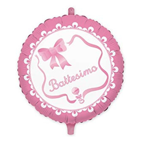 Palloncino mylar tondo cm.45 il mio battesimo rosa