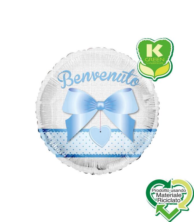 Pallone mylar benvenuto celeste tondo k-green 18”