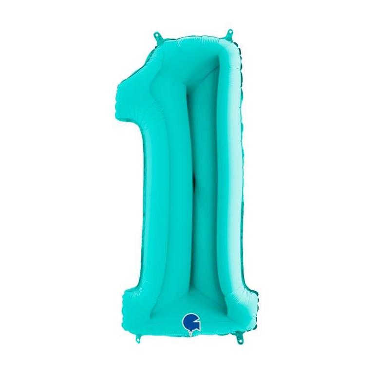 Pallone mylar numero 1 tiffany scuro mega 40” – 101 cm