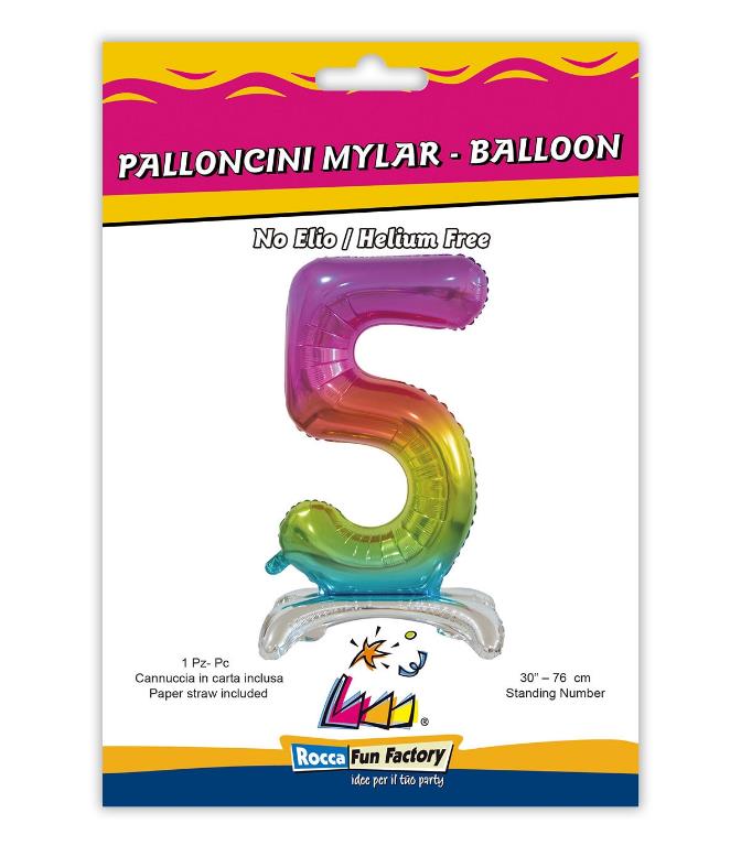 Pallone mylar numero 5 standing rainbow mega 30”-76 cm